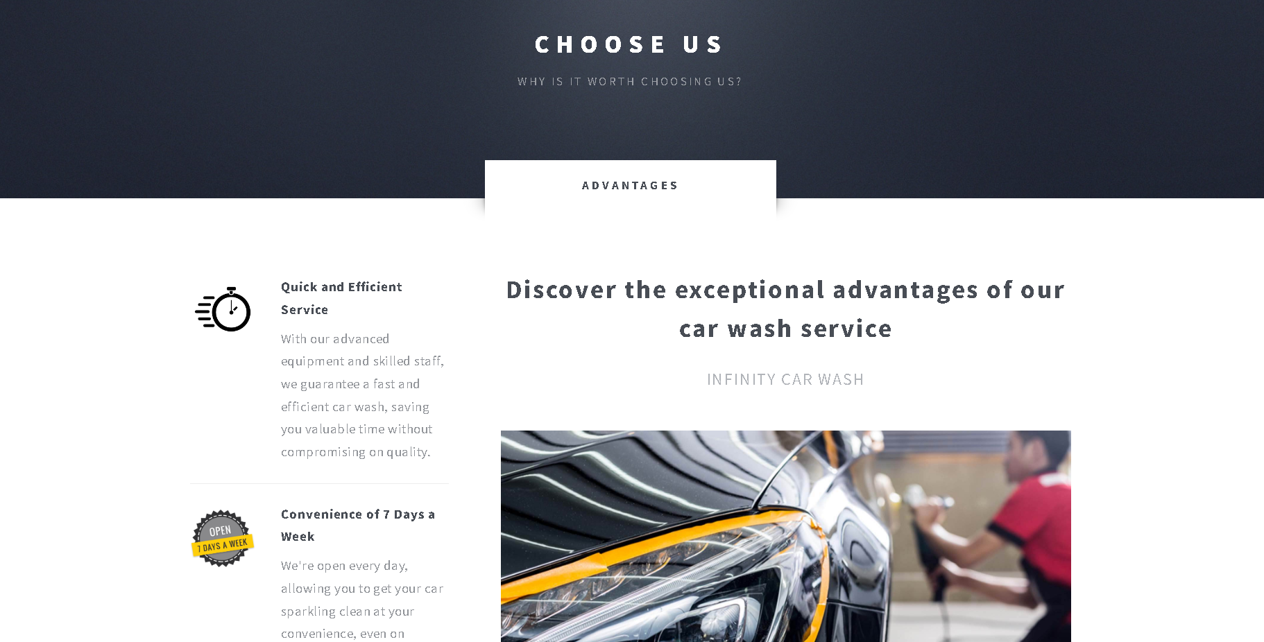 Welcome to "Infinity Carwash" - where automotive perfection meets convenience. Our web development project offers premium car washing and detailing services, ensuring your vehicle sparkles like new. Experience the epitome of care and shine with Infinity Carwash.