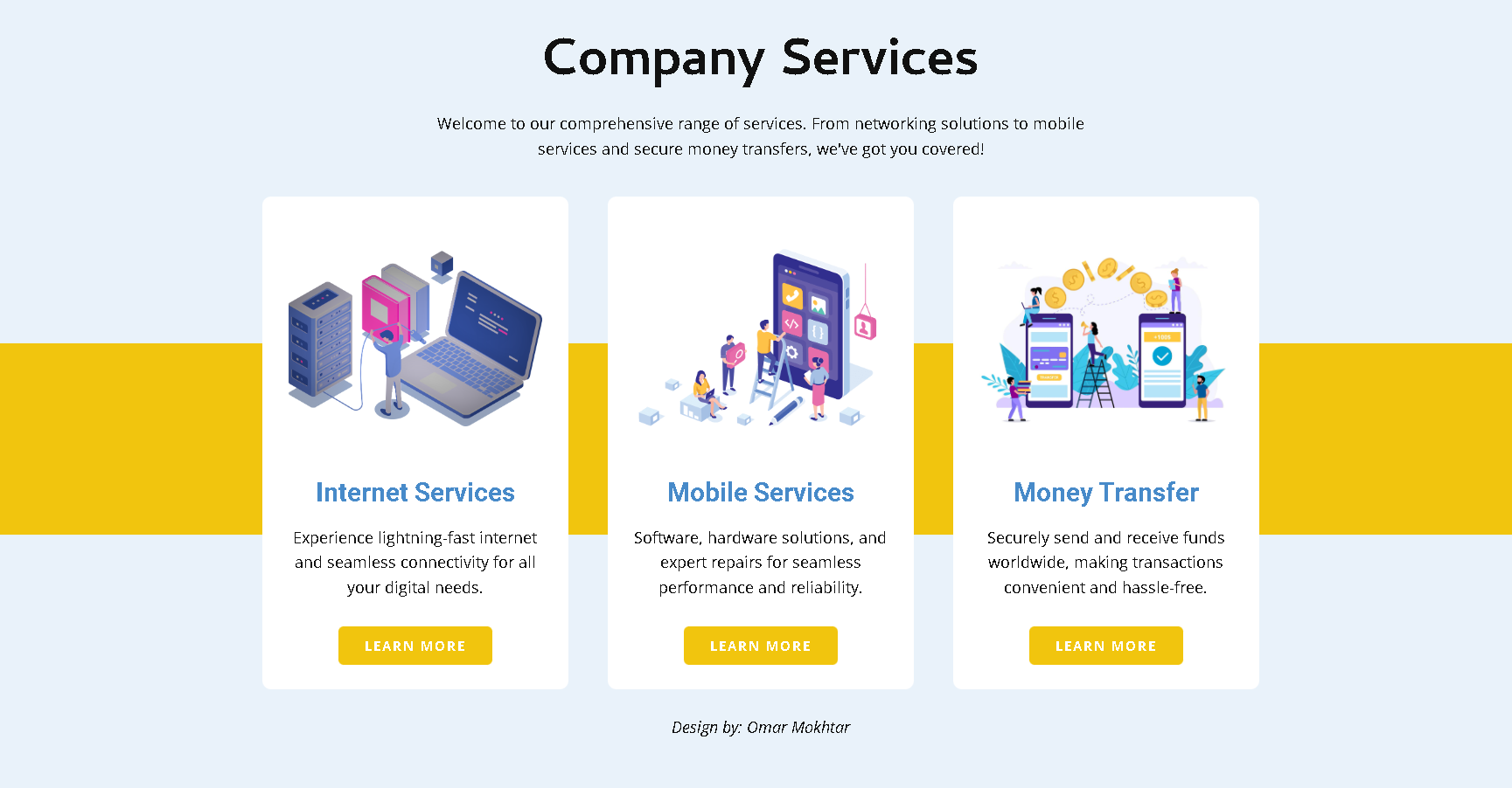 Introducing "Majed Tech" - a dynamic web development project revolutionizing the tech industry. Our site showcases a technology store catering to internet services, money transfers, and mobile software/hardware, providing a seamless and comprehensive user experience.